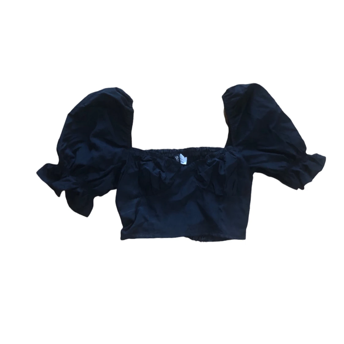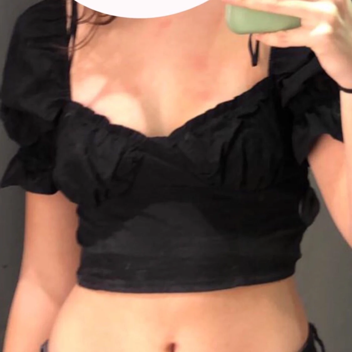 Svart topp med puffärmar. Storlek 34 och bara använd 1 gång! Fraktar eller möts i Umeå!🫧