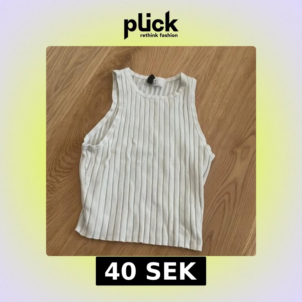 Säljer en stilren vit ribbad linnetopp från Divided. Den är stretchih och ganska kort, bekväm!😁