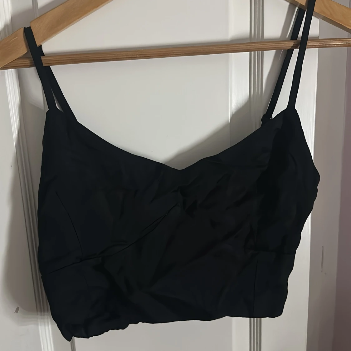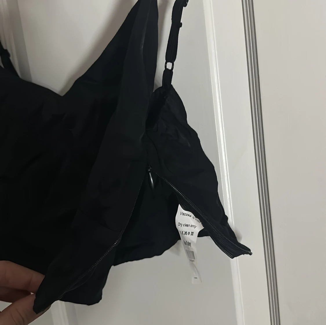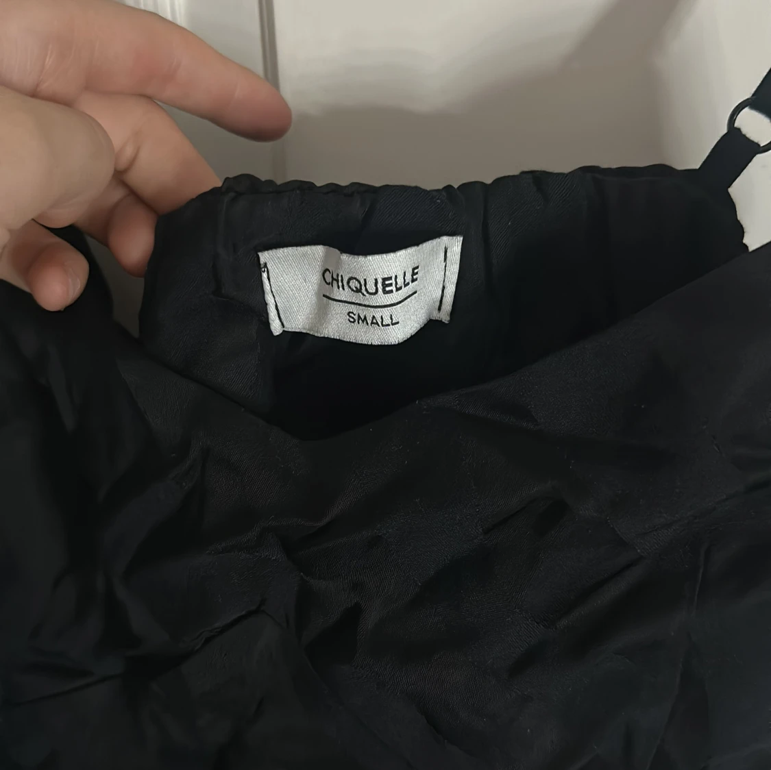 Snygg svart korsett-topp från Chiquelle med justerbara smala axelband och dragkedja i sidan. Toppen har en croppad passform och är tillverkad i mjukt viskosmaterial som ger en skön känsla. Perfekt att styla med höga jeans eller kjol. Använd endast i butik ‼️kommer inte till användning.