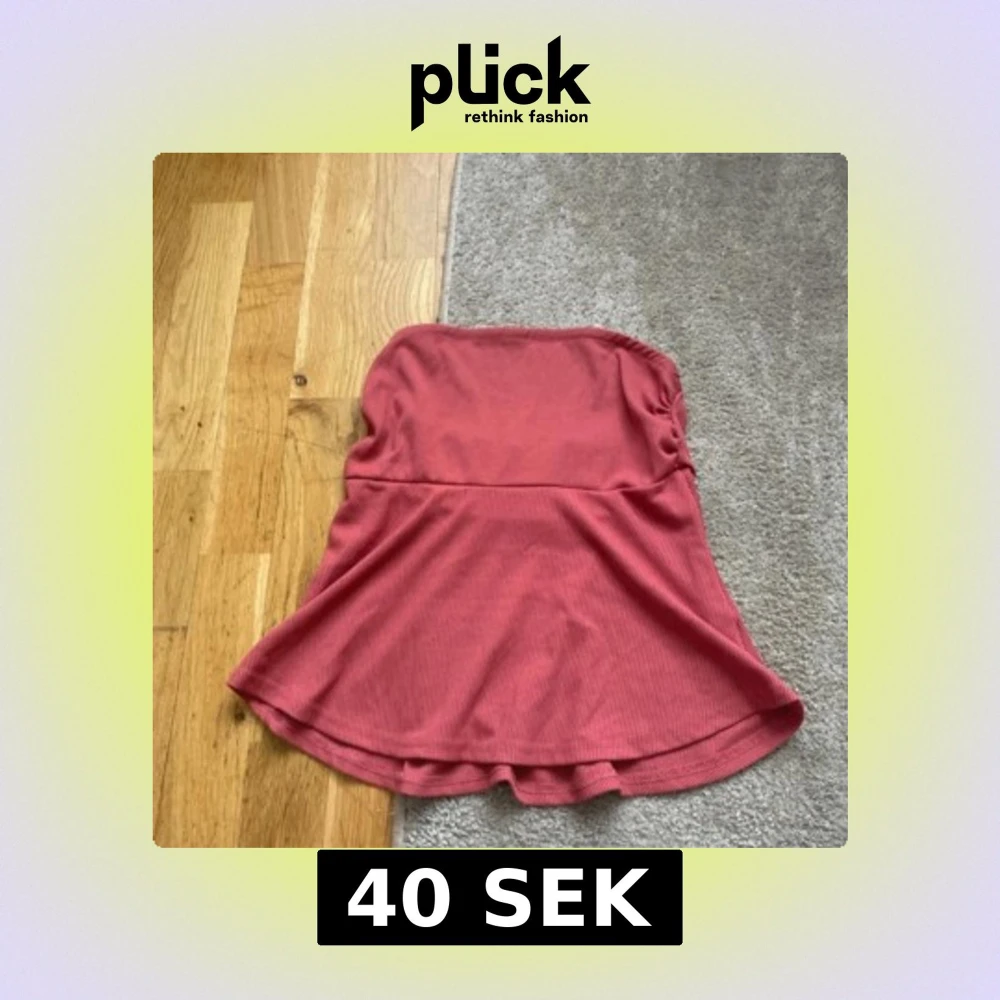 Säljer en rosa ribbad tubtopp med utsvängd nederdel. Toppen är ärmlös och har en mjuk, stretchig passform som sitter bekvämt runt överkroppen. Perfekt för varma dagar eller som ett lager under en jacka.