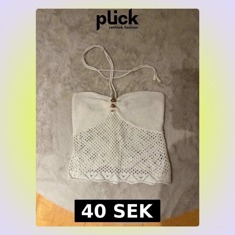 Vit stickad topp i storlek s/m. Kan anvĂ€ndas tom halterneck topp eller tubtoppđ
