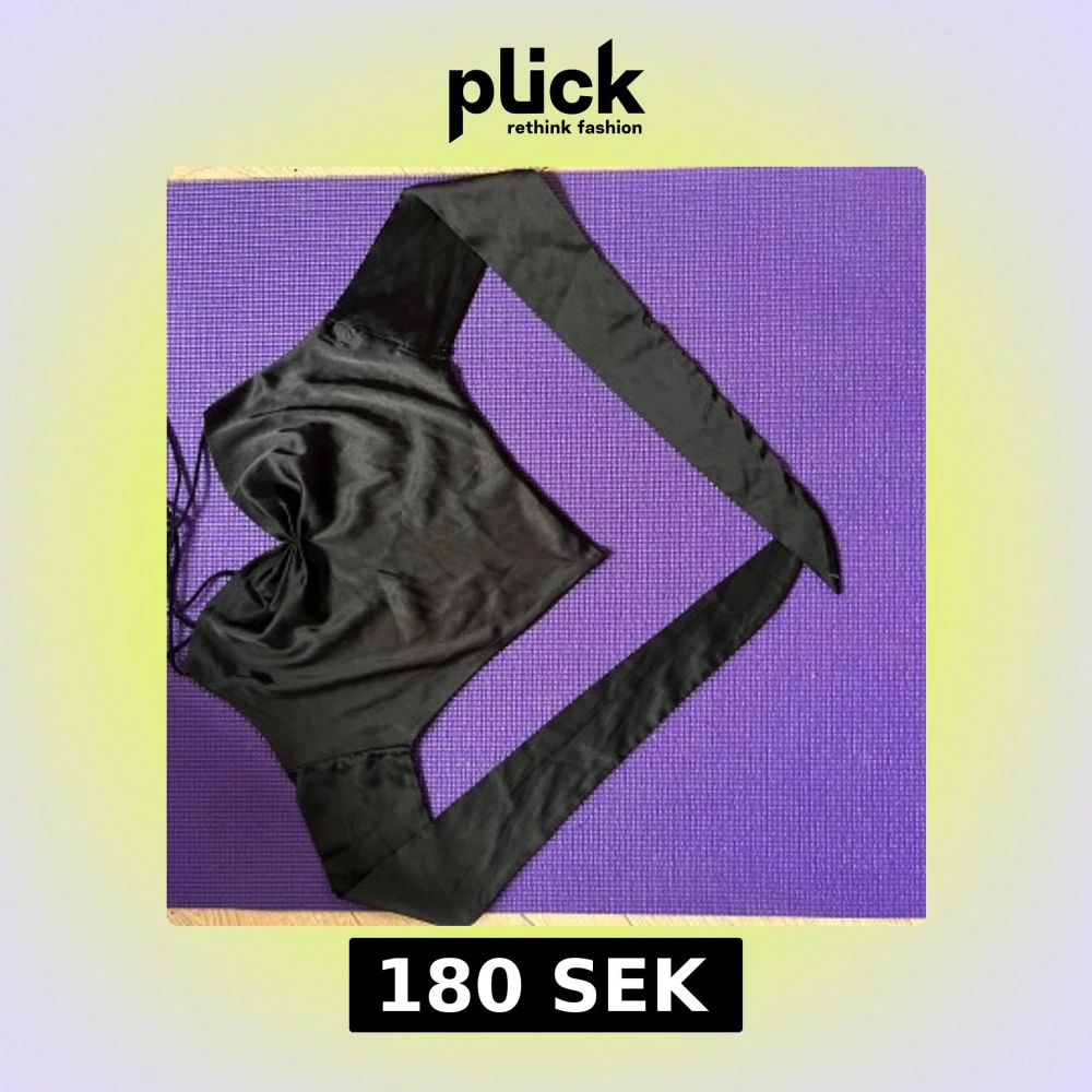 Supersnygg svart omlottopp från Cider i glansigt satinliknande material. Toppen har smala axelband, offshoulder-långa ärmar och v-ringning med lätt rynk framtill. Sitter croppad och knyts i ryggen för en trendig look.