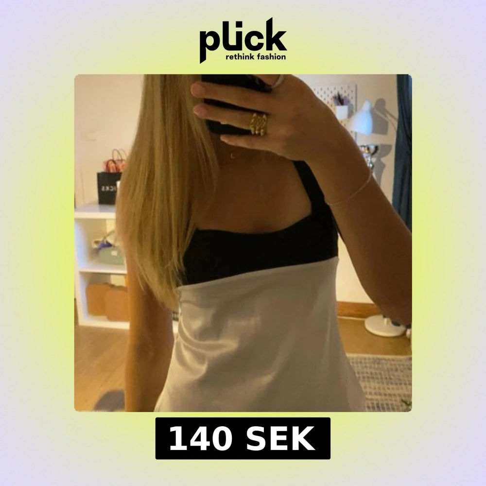 Säljer en snygg svartvit linne-topp i satin med breda svarta axelband och fyrkantig urringning. Toppen har en stilren och modern look med kontrast mellan svart upptill och vitt nedtill. Perfekt för dig som gillar minimalistisk stil och vill sticka ut.