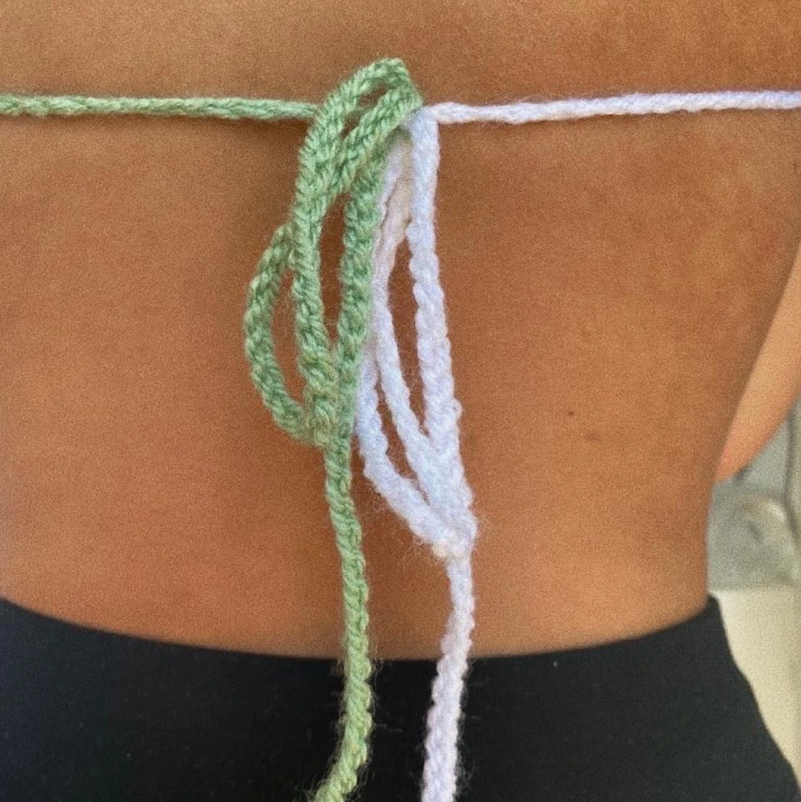 Virkad topp i spiralmönster som knyts i nacken och i ryggenđ Kan Ă€ven göras i andra storlekar och andra fĂ€rger, upp till 4 fĂ€rgerđ„°