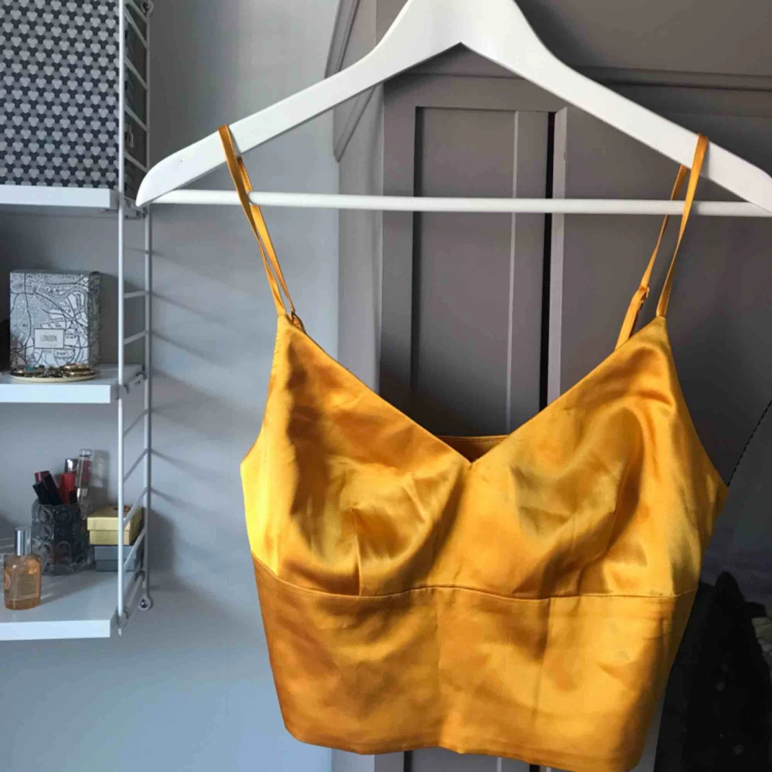 Guldaktig topp med justerbara band! Använd endast en gång! Kan mötas upp i Uppsala annars står köpare för frakt🥰