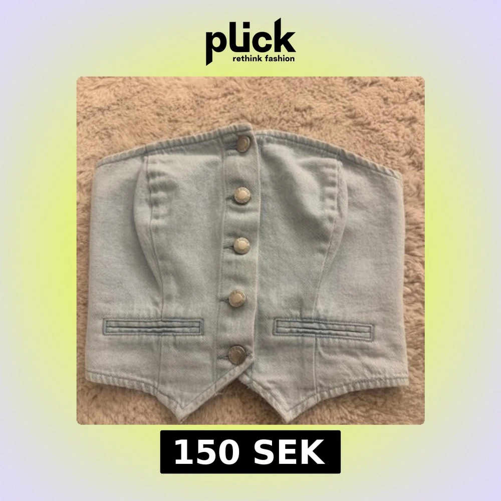 Säljer en snygg ljusblå korsett/topp från FB Sister (new yorker) i denim med markerad midja och fem silvriga knappar framtill. Toppen har två fejkade fickor och smockad rygg för extra komfort. Aldrig använd - ny skick