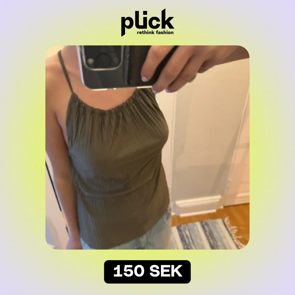 Säljer denna skit snygga topp från Gina tricot i Khaki färg Storlek S Öppen rygg
