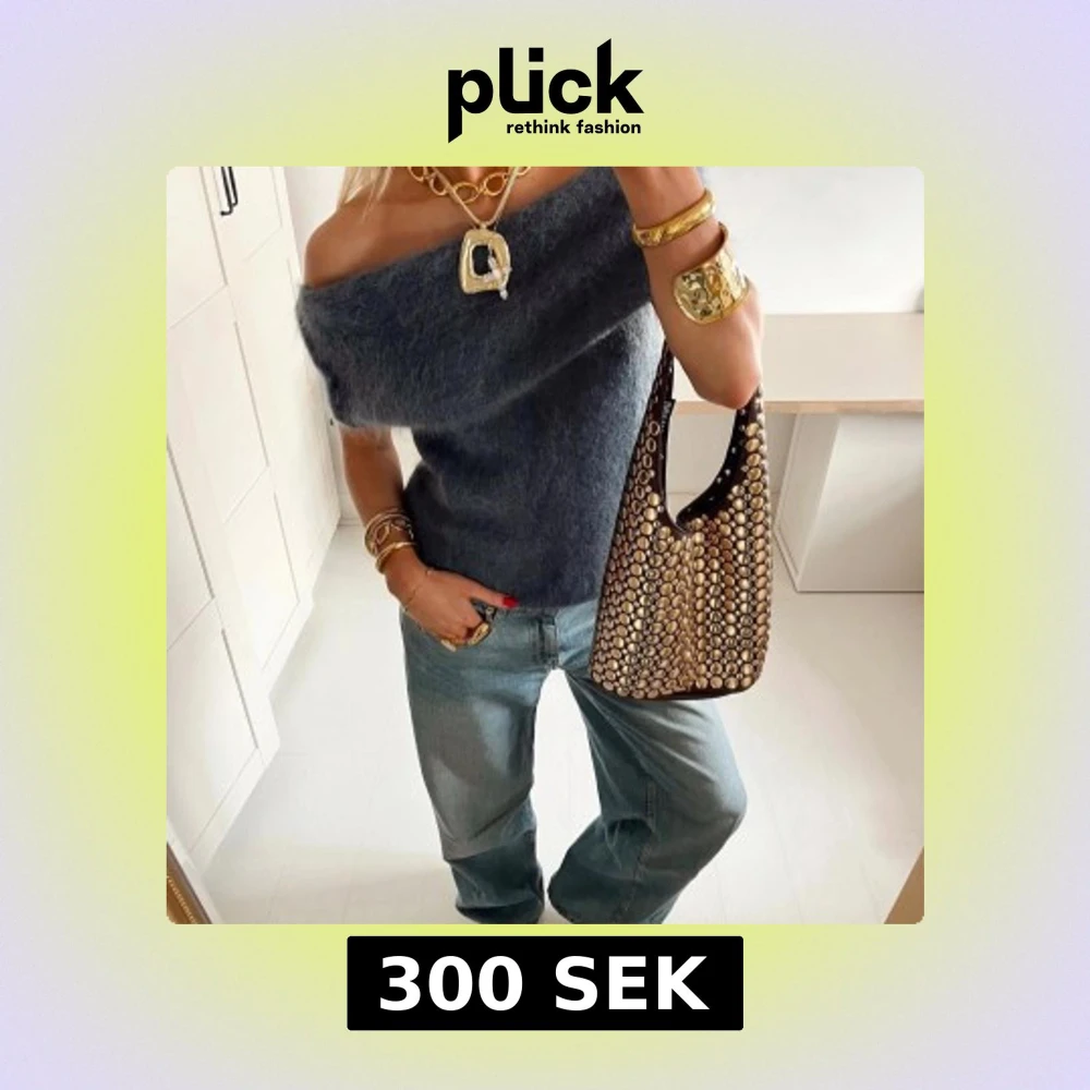 Mörkgrå offshoulder stickad topp