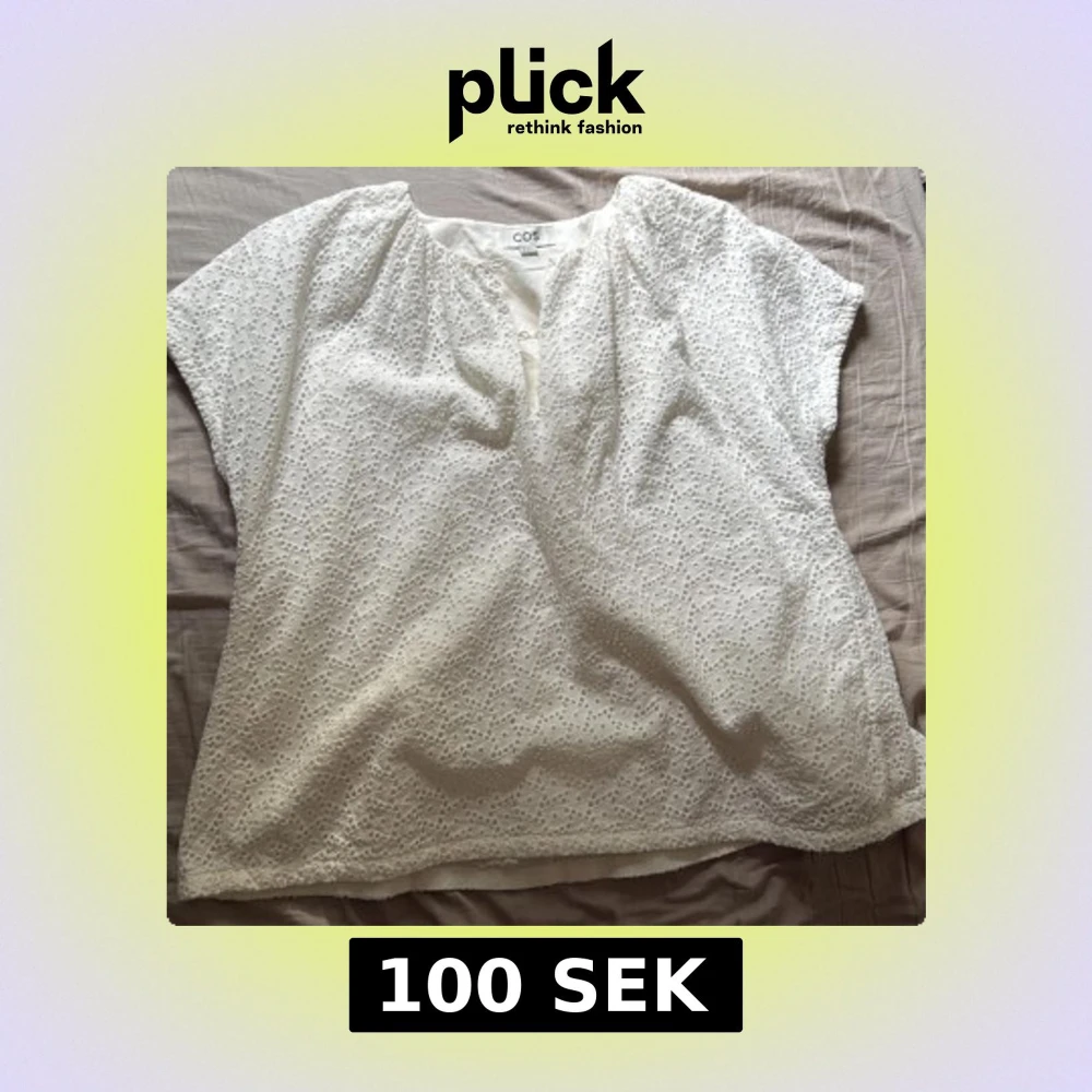 Superfin vit blus från COS i storlek 36. Blusen har korta ärmar, v-ringning med knappar och är täckt av broderade hålmönster som ger en luftig och somrig känsla. Perfekt till jeans eller kjol för en fräsch look. Stor i storlek.