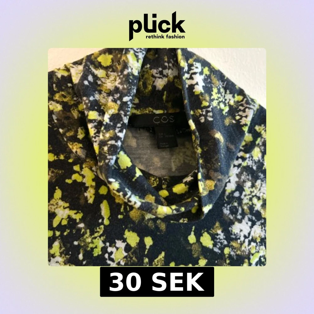 Snygg polotröja från COS med ett unikt mönster i svart, gult och vitt. Tröjan har långa ärmar och en hög krage, perfekt för att ge en stilren look. Passar utmärkt för både vardag och speciella tillfällen. Stretchig och skön, något liten i storleken.