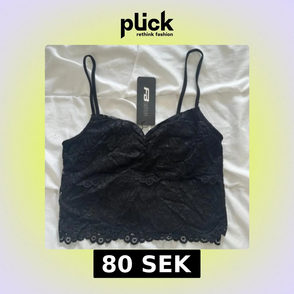 Supersnygg svart linnetopp från FB Sister med tunna justerbara axelband och vacker blommig spets över hela toppen. Croppad modell med vågig spetskant nertill och lätt vadderad byst. Perfekt att styla med jeans eller kjol för en trendig look