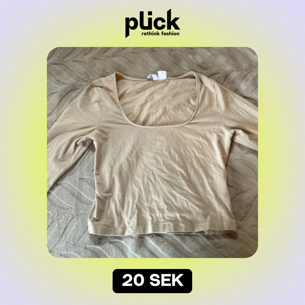 En croped långärmad tröja. Köpt på H&M avdelning divided. I färgen beige. Använd väldigt varsamt. I storleken S.