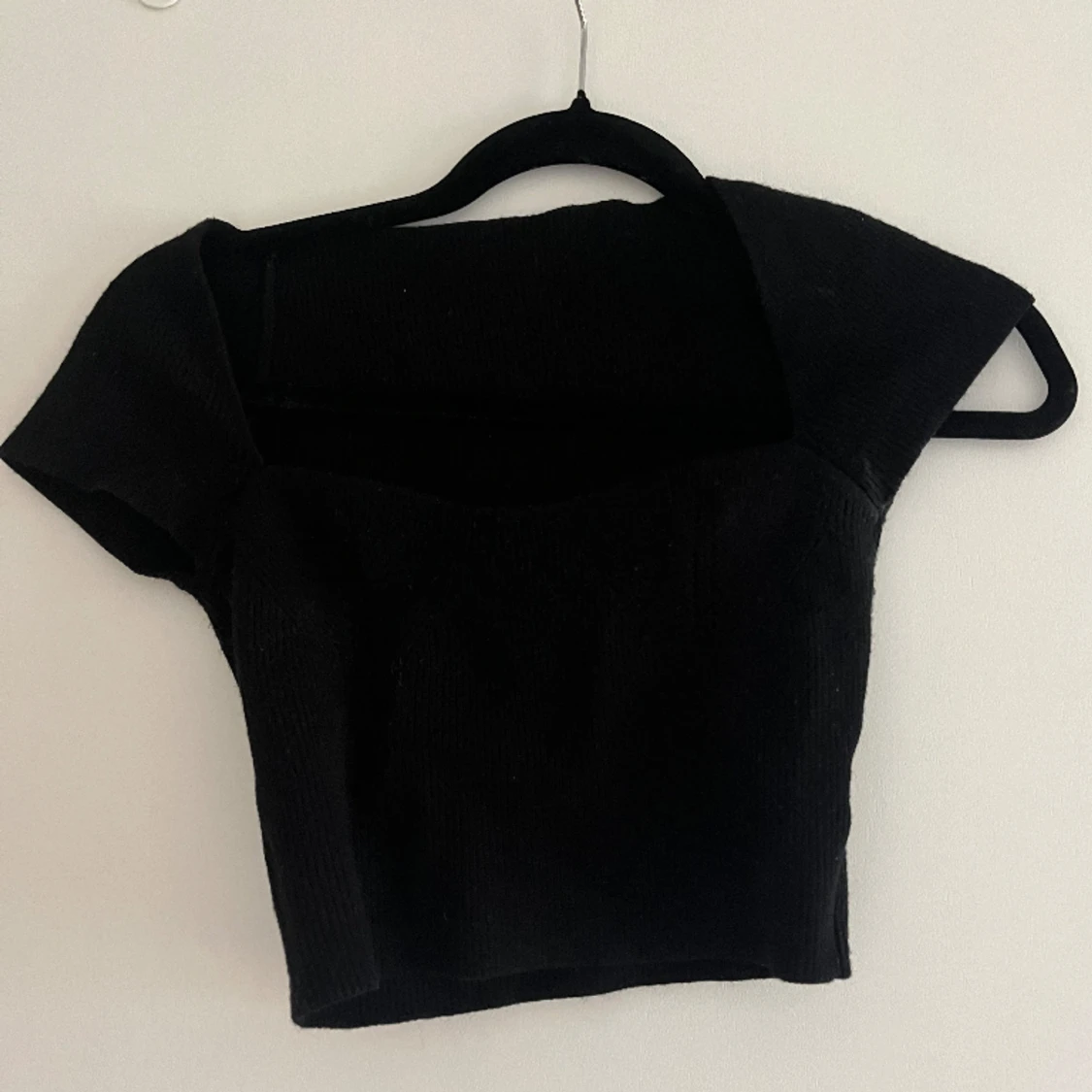 Svart topp i stickat material Normal i storleken, inga defekter