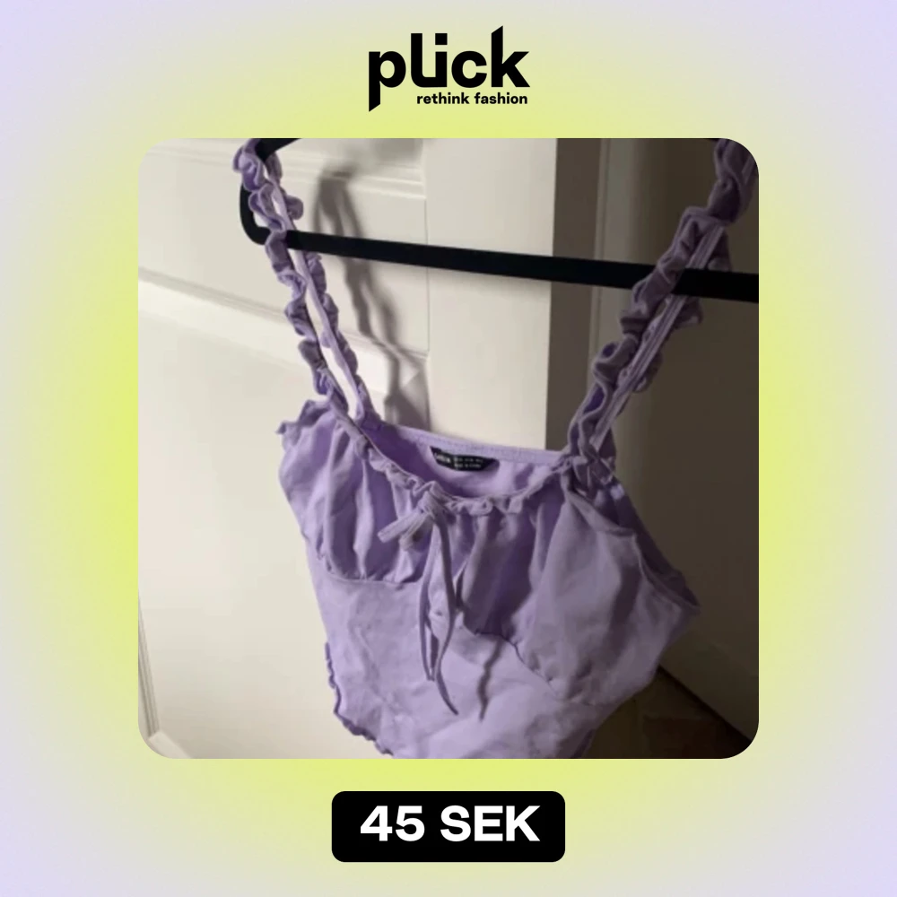 Plommonlila volangtopp med snörning - Supersöt plommonlila topp med volangkant längs v-ringningen och axlarna. Toppen är ärmlös och har snörning framtill. Materialet är ribbat och ger en trendig känsla.