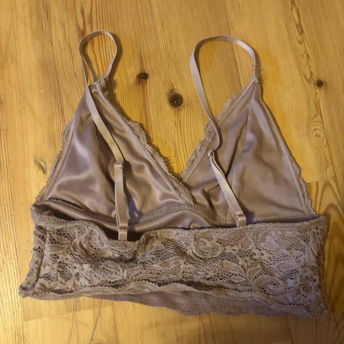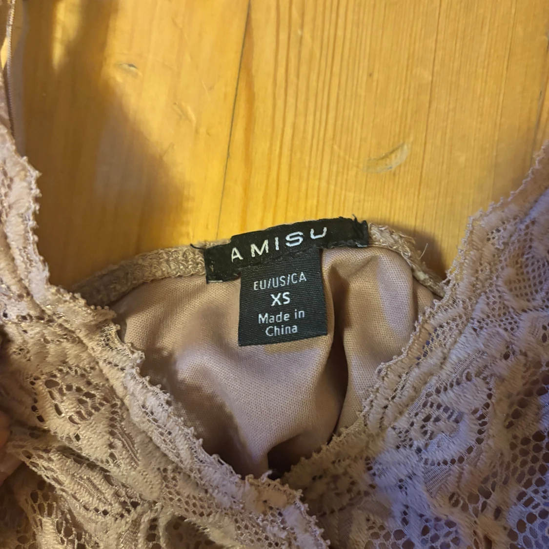 Säljer en rosa croppad top från Amisu i storlek XS. Toppen är helt i spets med v-ringning och justerbara axelband. Perfekt för lager-på-lager