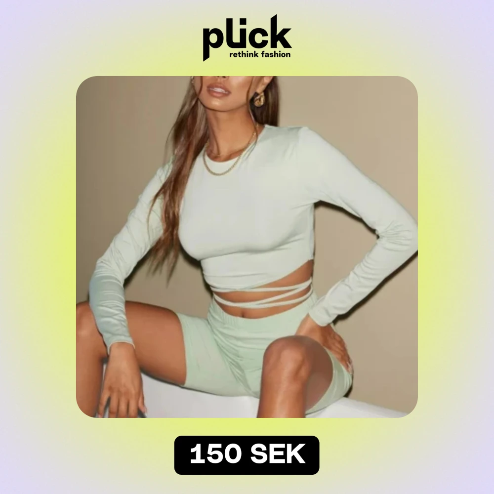 En mintgrön croppad topp med snörning, helt oanvänd, lappen kvar. Säljer pga fel storlek. (Första bilden är lånad från Nellys hemsida)