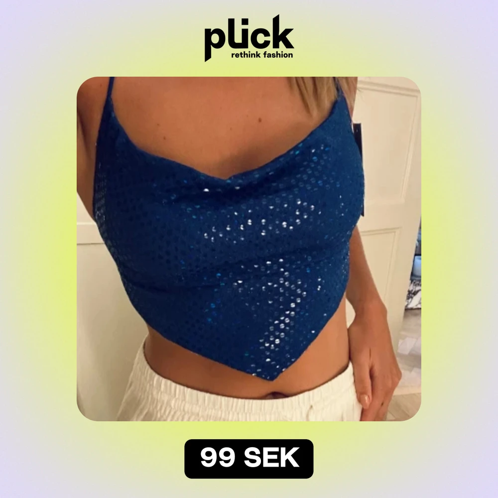 Blå paljettopp från Nelly med knytning baktill och runt halsen, aldrig använd och har lappen kvar!💙 säljer för den ej kommit till användning
