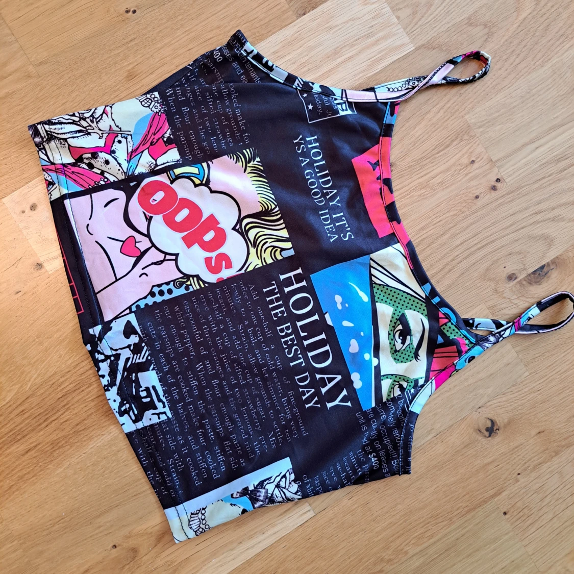 Cool magtröja med comicbook tryck. I princip oanvänd pga fel storlek, den är XS, men den känns som S/M med stretch
