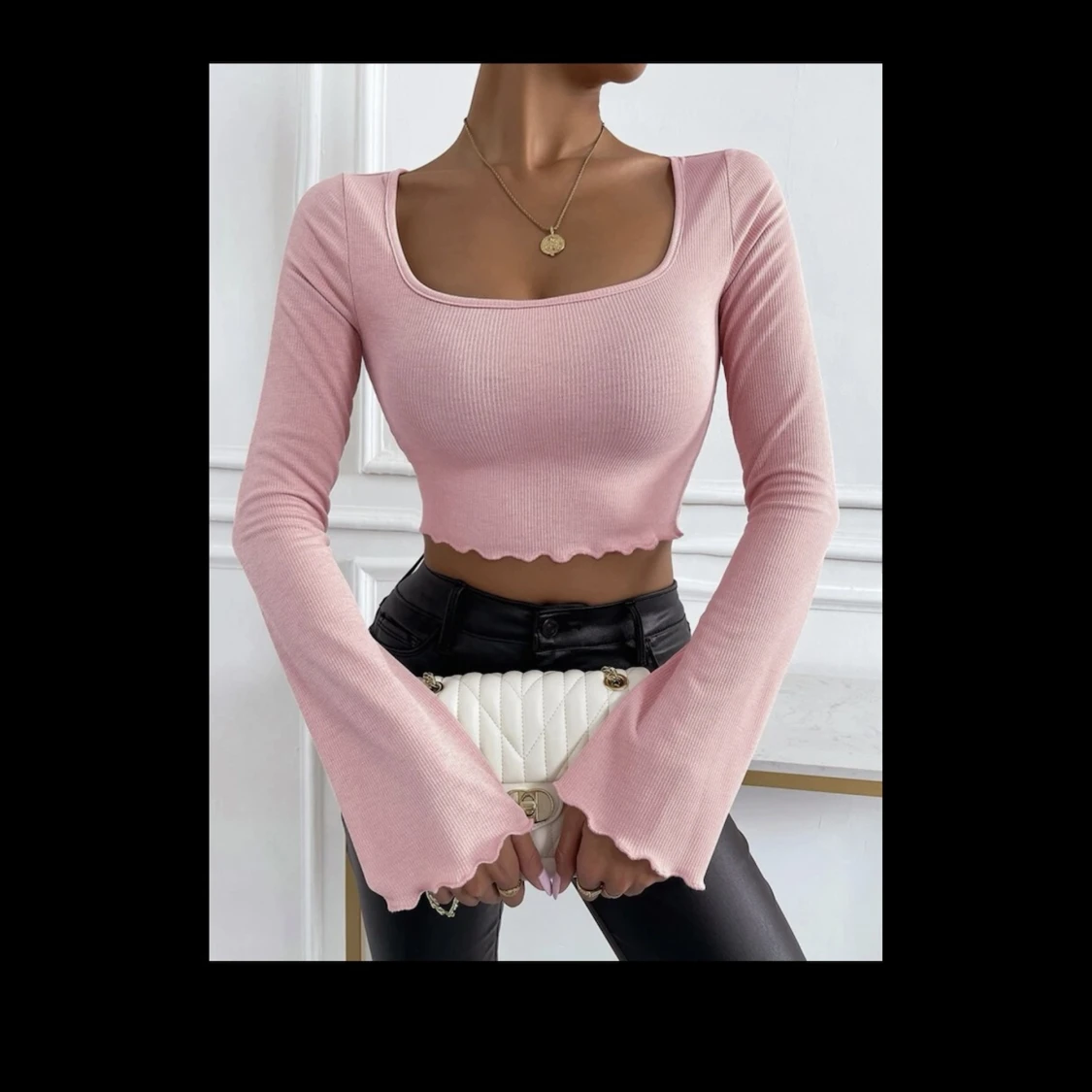 Babyrosa kroppad topp med långa vida ärmar. Denna topp är oanvänd och är i storlek M men är liten i storleken så passar som S perfekt!