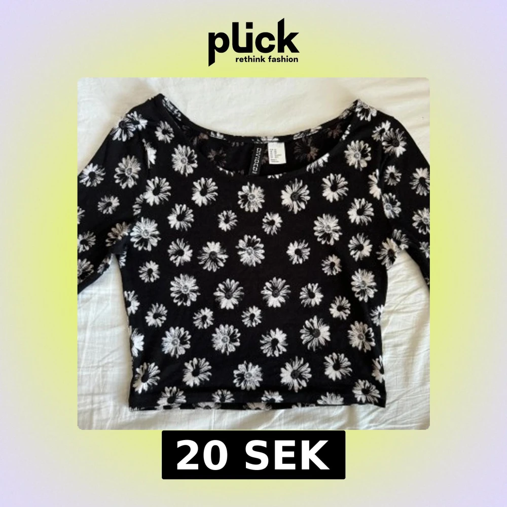 Snygg svart topp med vita blommor från H&M Divided. Den har långa ärmar och en croppad passform. Materialet är mjukt och stretchigt. Har bara använts ett fåtal gånger. Pris kan diskuteras! 🌸