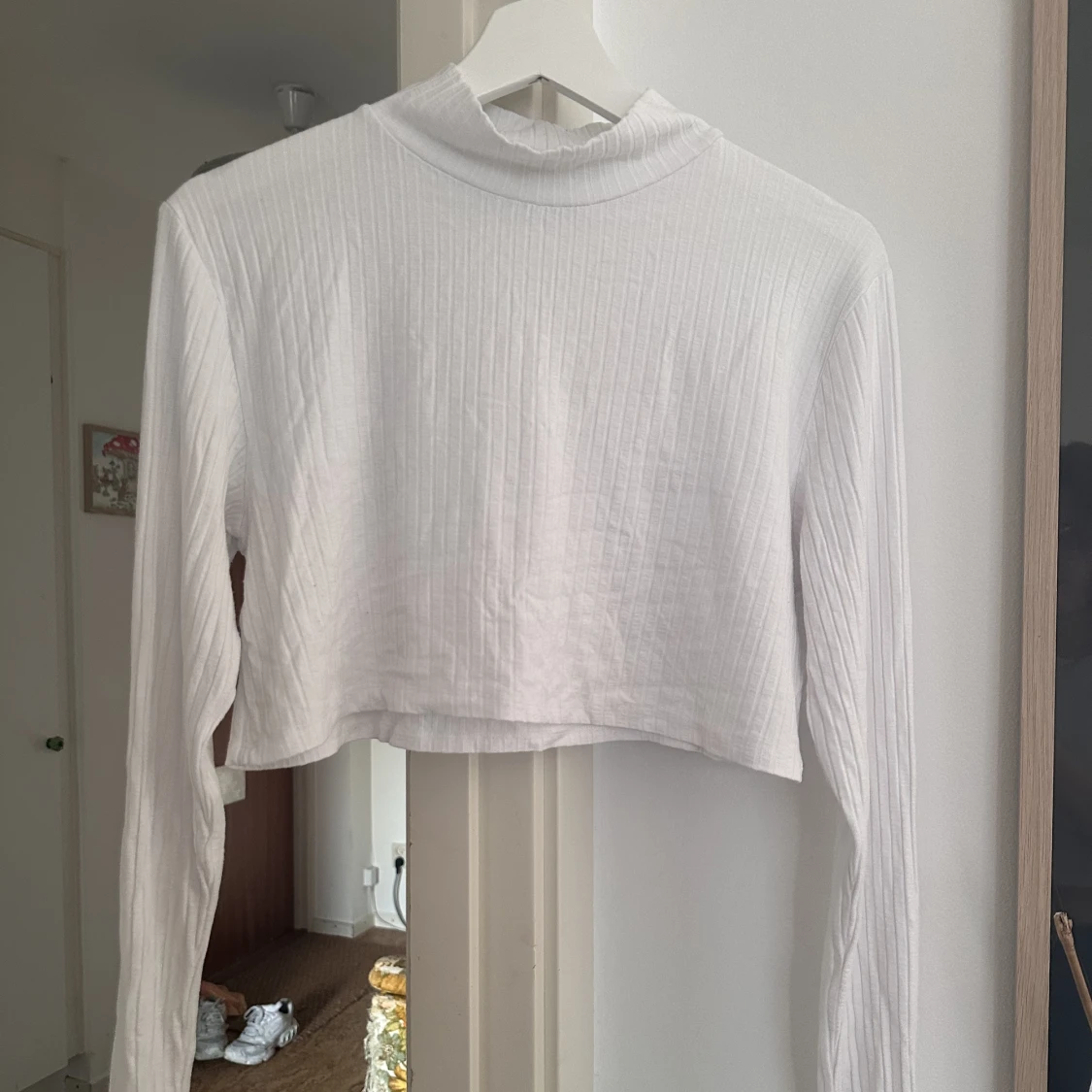 Vit ribbad croptop Superbra skick utan slitage eller fläckar Är en xl men skulle säga den är mer som en större S. Slutat precis under bröstet på mig som är 165