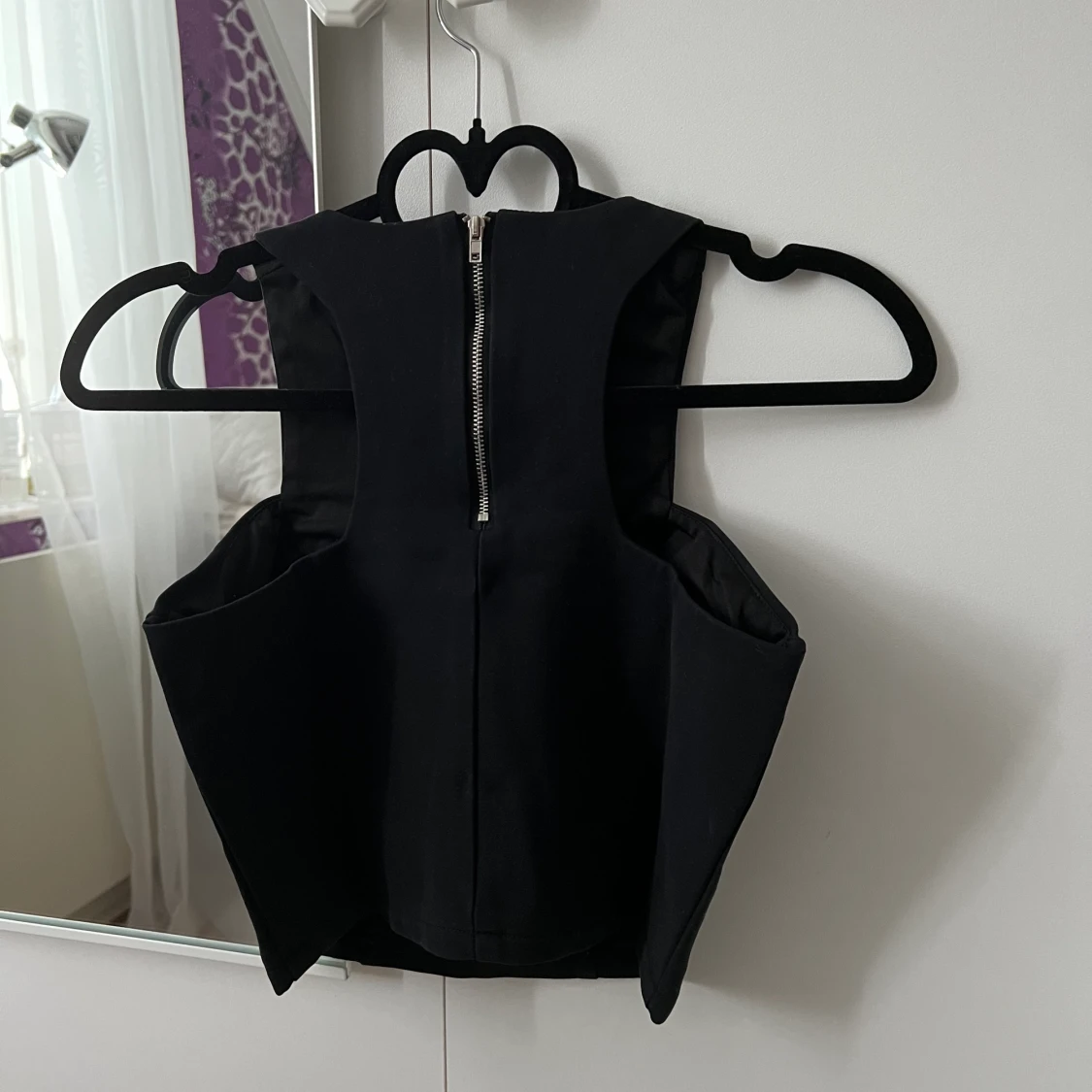 Svart, stretchig crop top med dragkedja i ryggen.