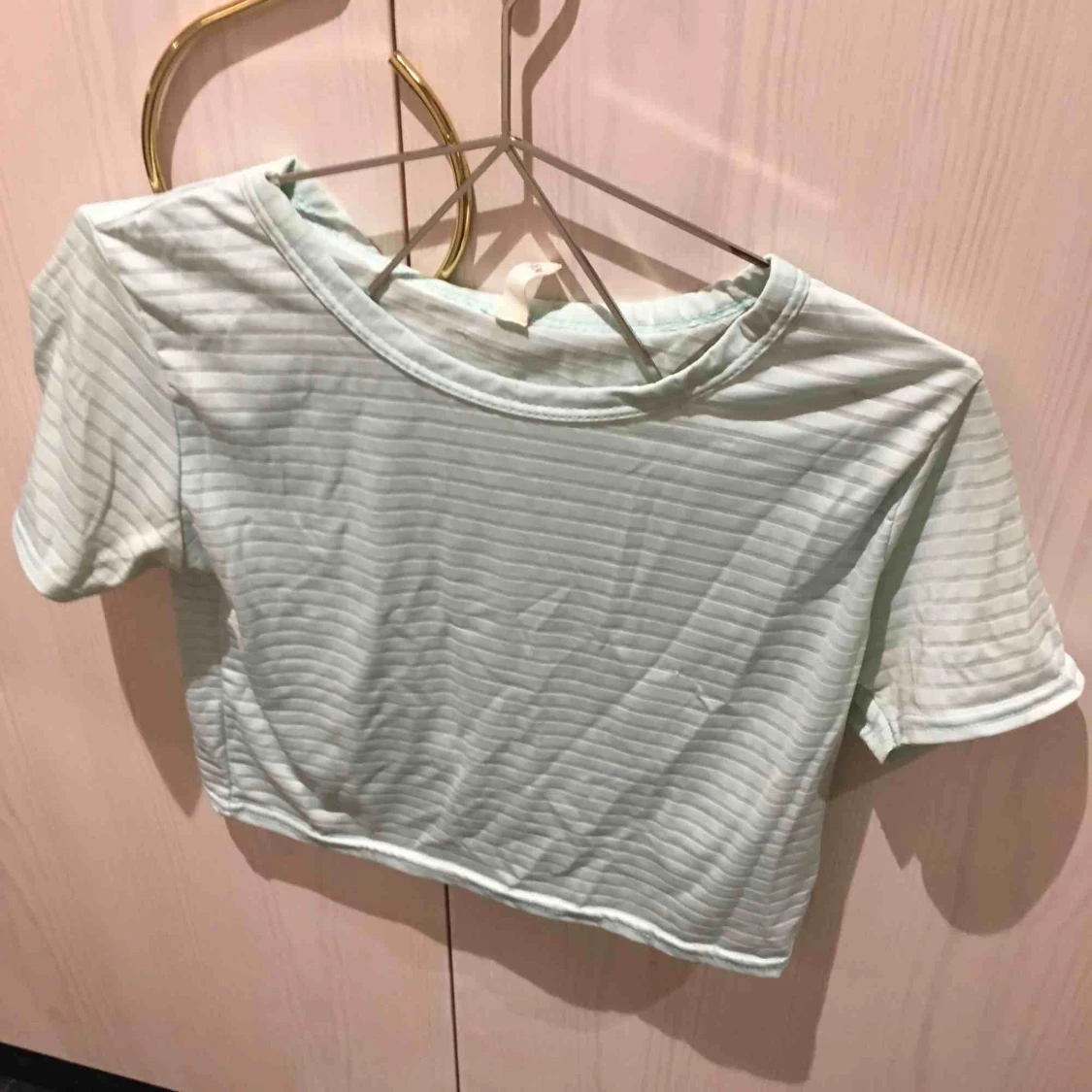 Jättesnygg och skön tröja i croptop-modell. Mintgrön i färgen, jättesnygg när man är brun! Materialet är väldigt mjukt och svalt, perfekt till sommaren. Lite lätt genomskinlig, Köpt i Köpenhamn.