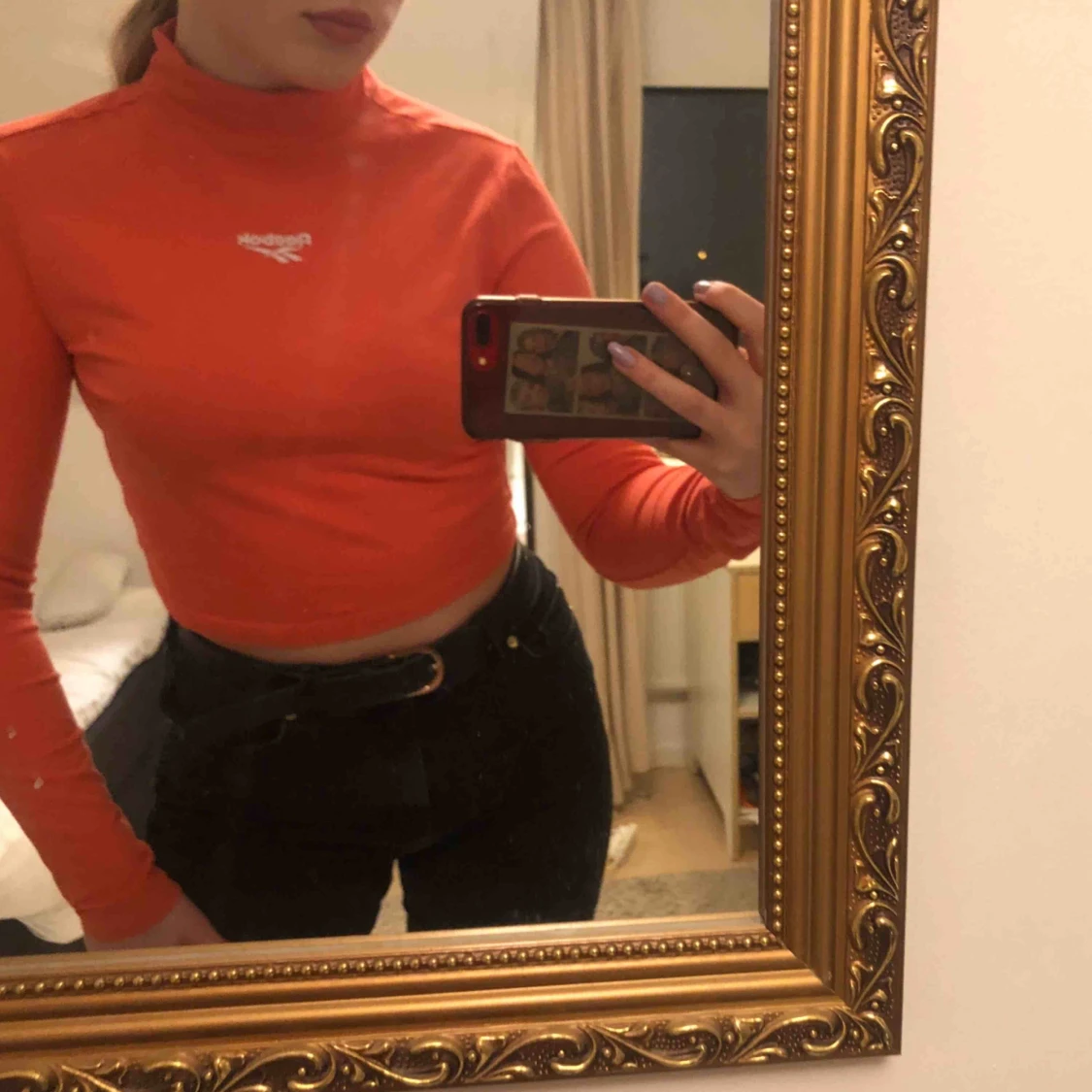 Croppad tröja med hög krage från Reebok köpt på ASOS. Tröjan är i bomull och passar både till vardags och träning. Reflexmärke i nacken samt logga i fram. Använd endast 1 gång och köpt i höstas så tröjan är i bra skick! (Skriv för fler bilder!)
