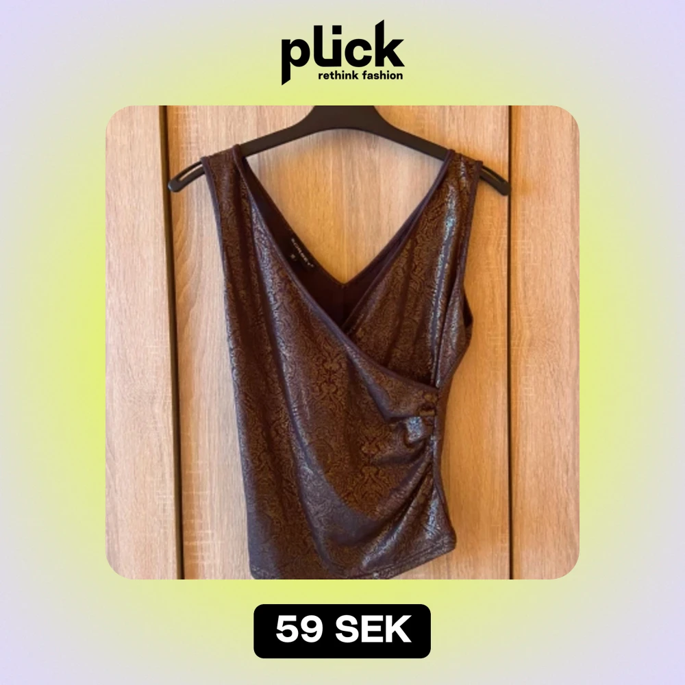 Brunt linne med gulddetaljer och tjocka axelband. Crossover vid bröstet✨ nyskick