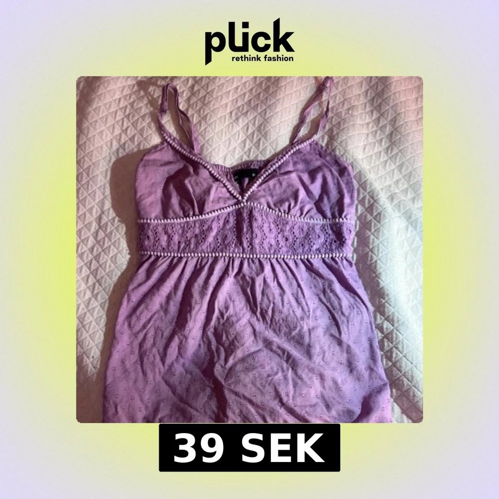 Supersöt ljuslila linnetopp med smala axelband, broderade detaljer och små prickar i tyget. Perfekt för varma dagar! 😇