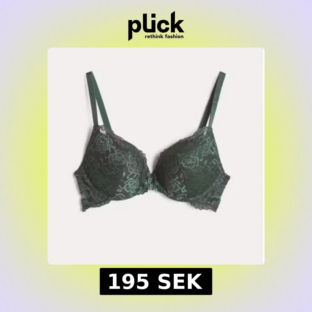 Snygg grön push up- bh i spets med justerbara axelband och en liten rosett framtill. Köpt på cubus för 249kr. Myckt bra skick har endast används fåtal gånger. Hör av dig vid frågor💞