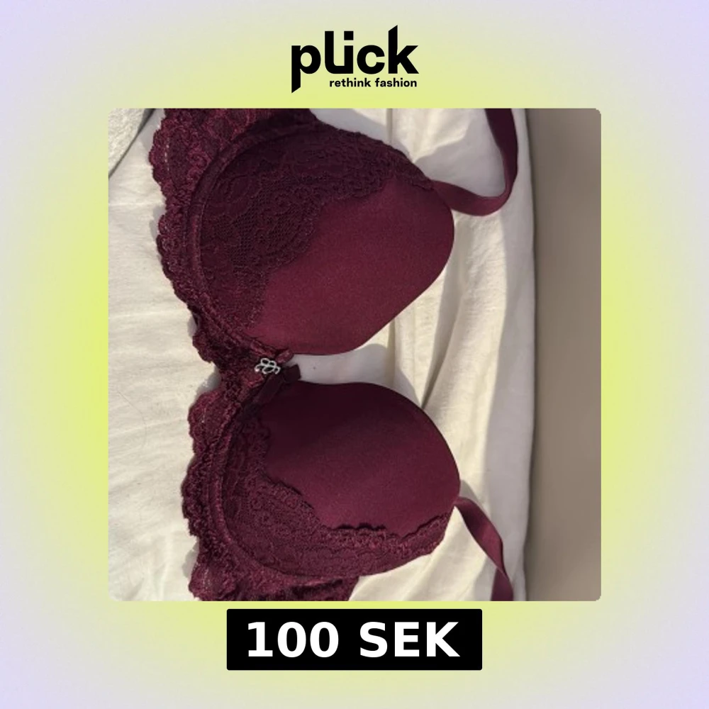 Snygg vinröd bh från Cubus med vadderade kupor och fina spetsdetaljer längs kanterna. Bh:n har en liten rosett framtill och justerbara axelband. Materialet är mjuk polyester och elastan som ger en bekväm passform.