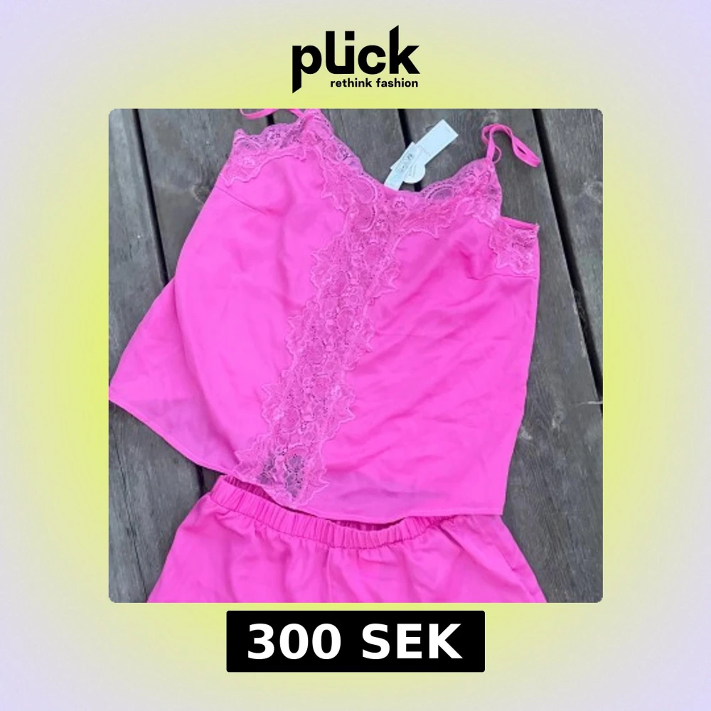 Superfin rosa pyjamas från Lindex med tunna axelband och detaljerad spets längs halsringningen och framtill. Toppens material är mjukt och lätt, perfekt för varma dagar. Spetsen ger en extra touch av stil och gör toppen riktigt söt och trendig.