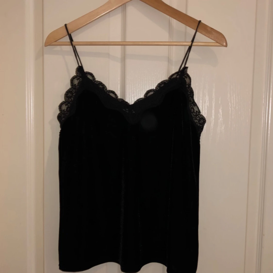 Svart linne med spetskant. I väldigt gott skick. Köpare betalar frakt.