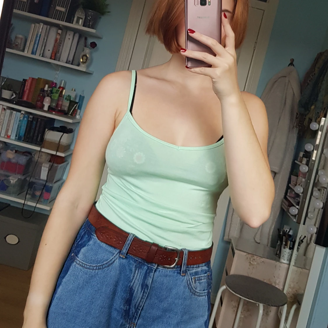 Ljusgrönt v-ringat linne