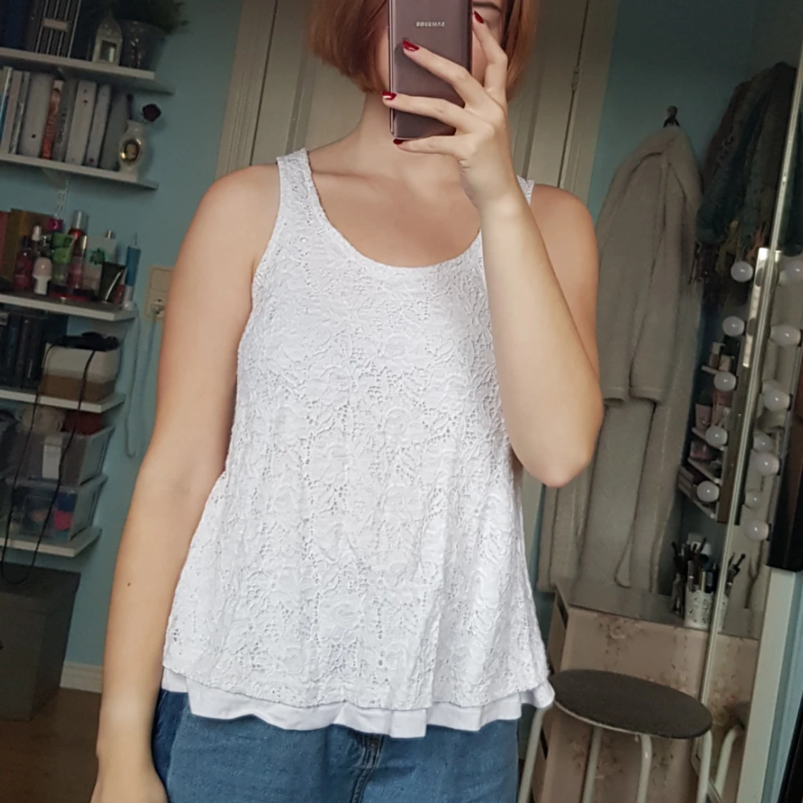Tjockt linne i vit spets. Välanvänd men i bra skick!