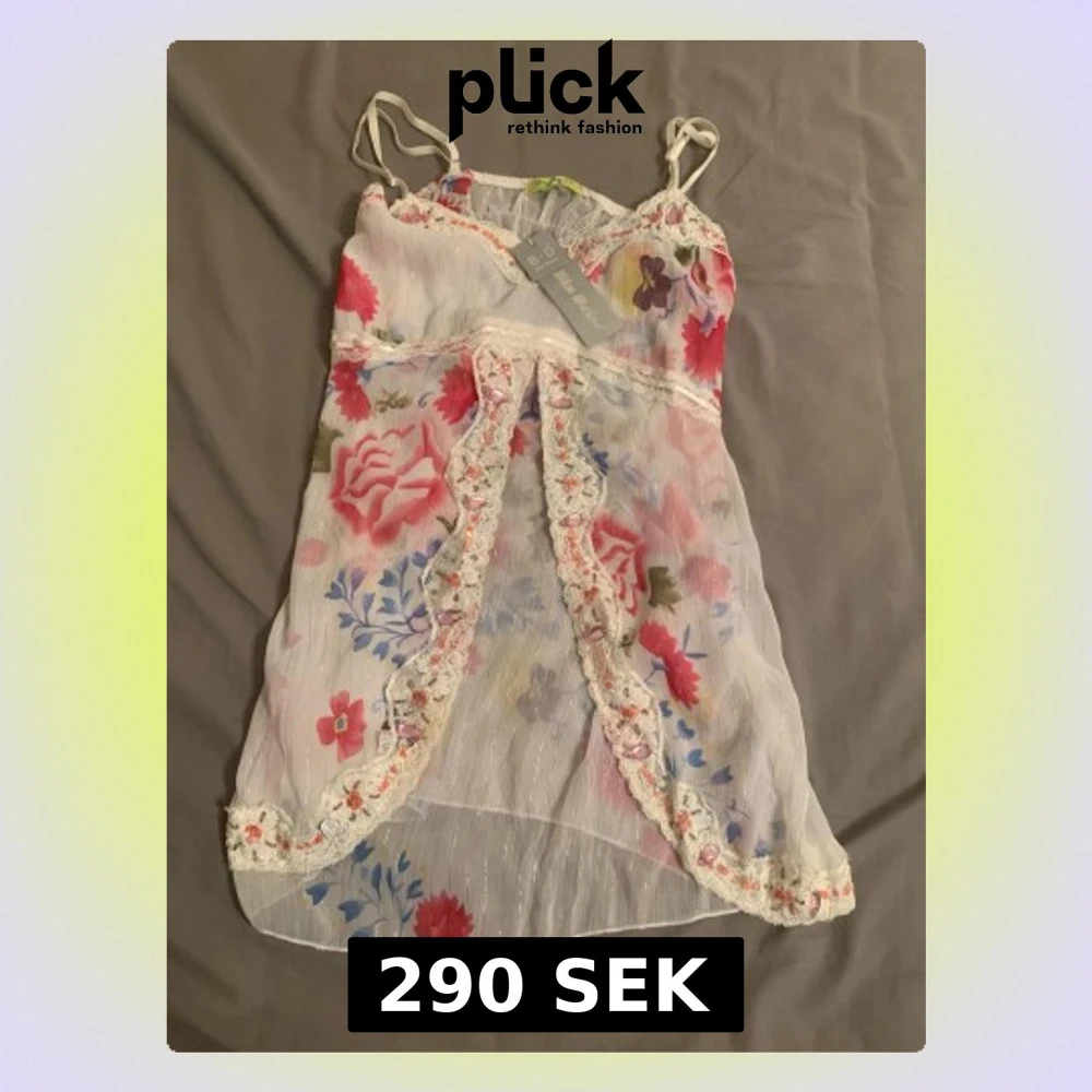 Ny, oanvänd med etikett på! En jättevacker topp i tunt och skönt material, med fina blommor. Perfekt för coquette look fairycore, eller bara en liten cute och romantic look! Det står att storleken är XL, men upplevs liten i storlek och motsvarar snarare en M!!!