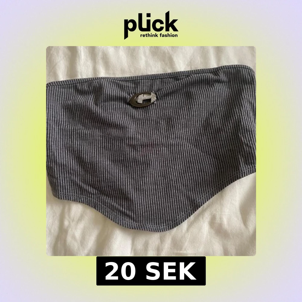 Säljer en grå crop top från Shein med smala svarta ränder och ett ovalt spänne med glittrande stenar framtill. Perfekt för att lyfta din outfit.