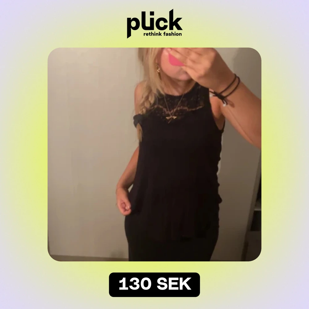 Säljer en snygg svart ärmlös topp i storlek S. Toppen har fina spetsdetaljer vid halsen och är perfekt för både vardag och fest. Den är tillverkad i ett mjukt och bekvämt material som känns skönt mot huden. Passar bra till både jeans och kjol!