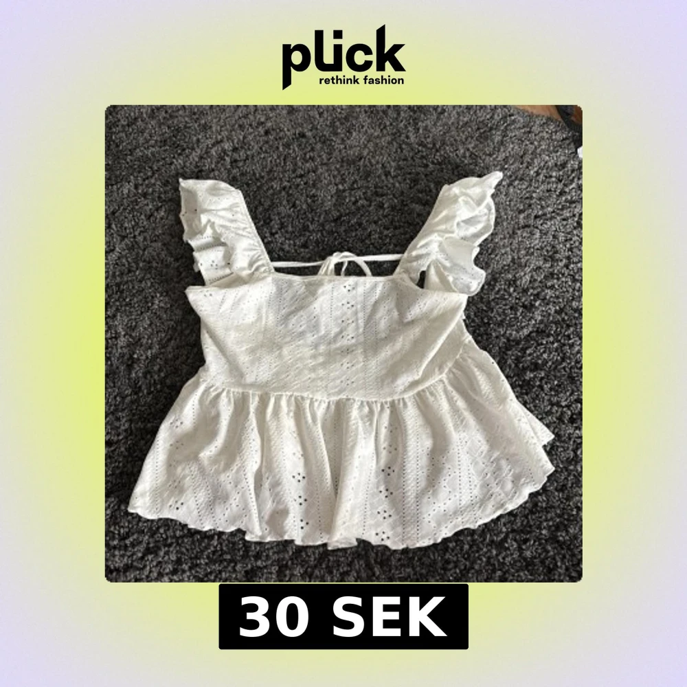 Superfin vit topp från SHEIN med broderade detaljer och volang på axelbanden. Toppen har knytning i ryggen och är tillverkad i polyester med elastan. Perfekt för sommardagar och ger en romantisk look.