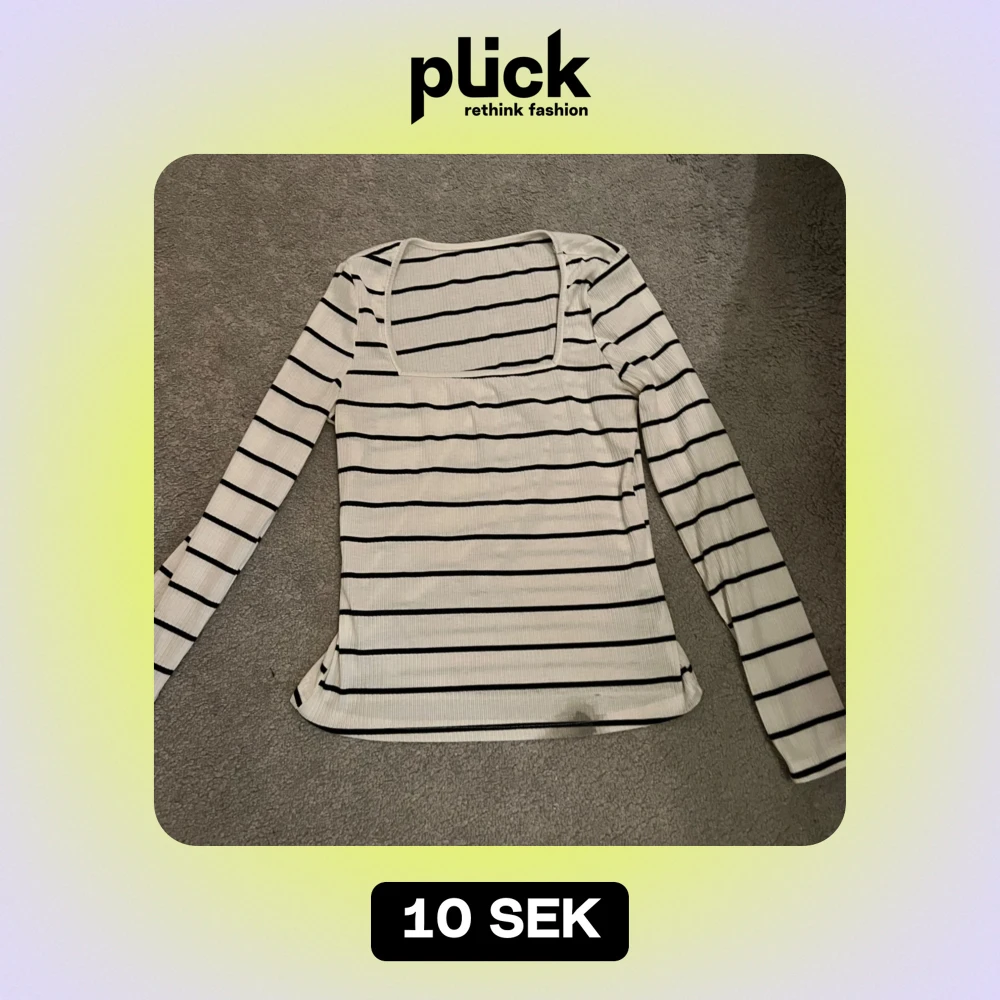 Säljer en randig långärmad topp från SHEIN i svart och vit. Toppen har en fyrkantig halsringning och är ribbad i materialet. Den är i bra skick men har en liten fläck längst ner. Perfekt för vardagsbruk eller en avslappnad dag ute.