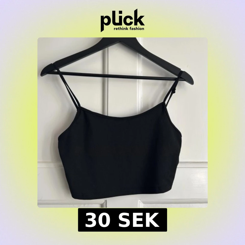 Säljer en svart croppad linnetopp med dubbla tunna axelband. Toppen är tillverkad i stretchigt material och passar perfekt till sommaren. Enkel och stilren design som är lätt att matcha.