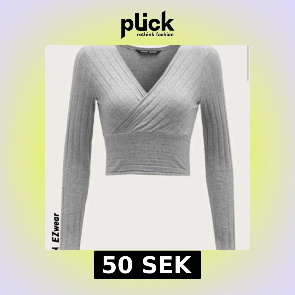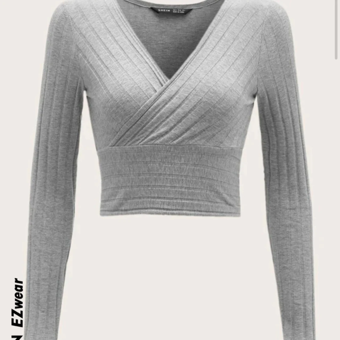 Säljer en stilren grå ribbad omlottopp från Shein. Toppen har en v-ringad design och långa ärmar, perfekt för både vardag och fest. Den är tillverkad i ett mjukt och bekvämt material. Säljer toppen för 50kr🥰