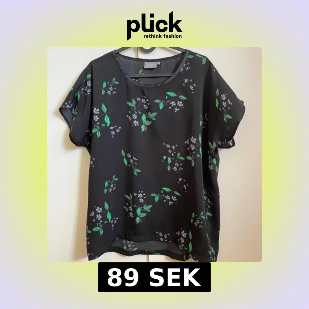 Svart blus från b.young med grönt och vitt blommönster. Lös passform och korta ärmar. Perfekt för en stilren och bekväm look. Storlek 38.