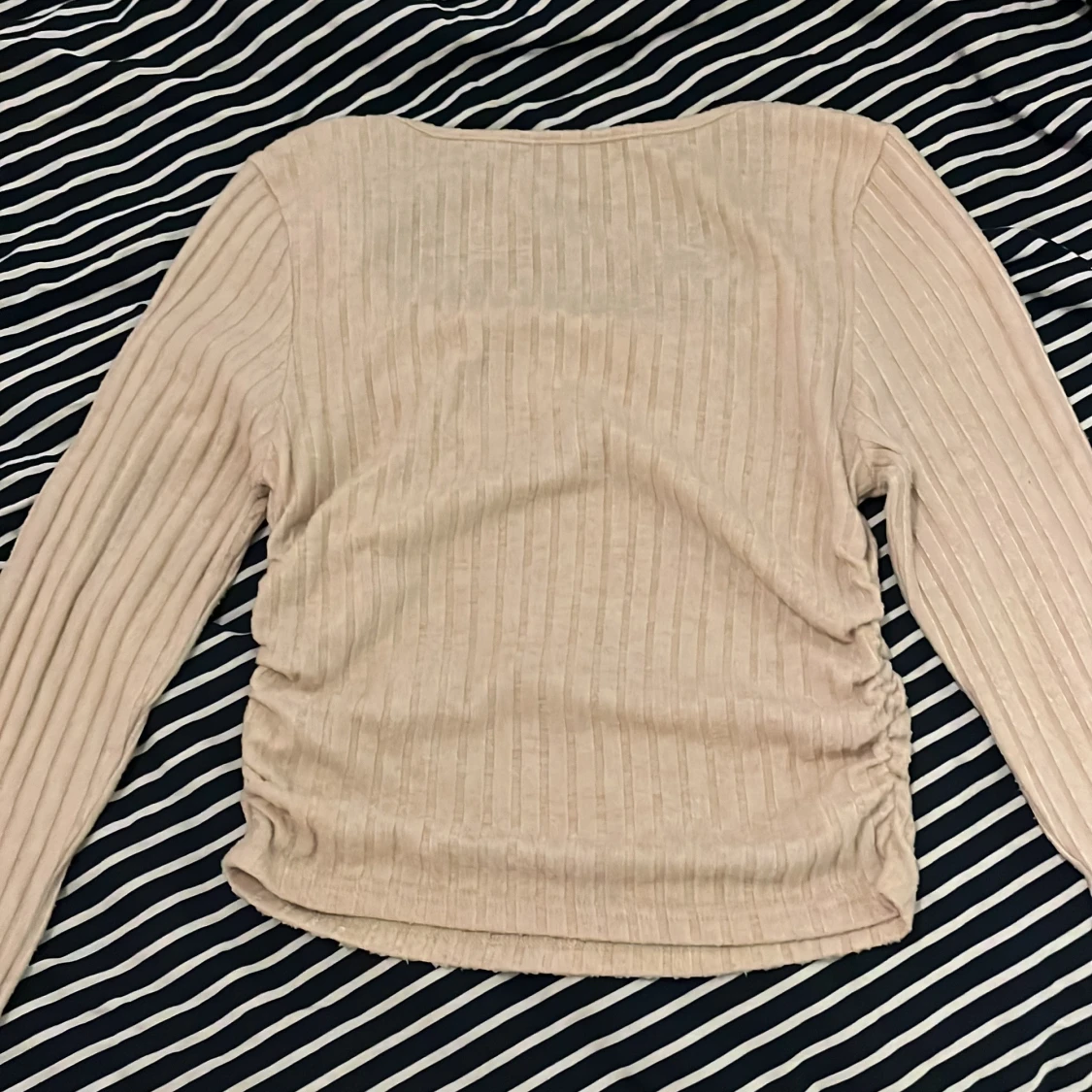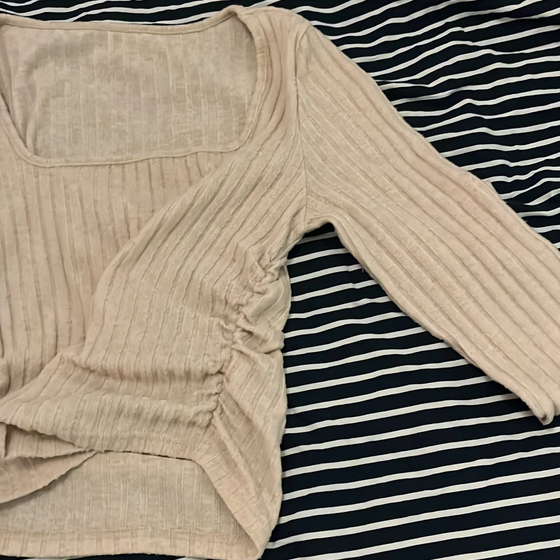 Säljer en beige ribbad topp från SHEIN med lång ärm och fyrkantig ringning. Toppen har en tight passform och är tillverkad i en mjuk viskosblandning med lite stretch. Perfekt att styla till olika outfits!