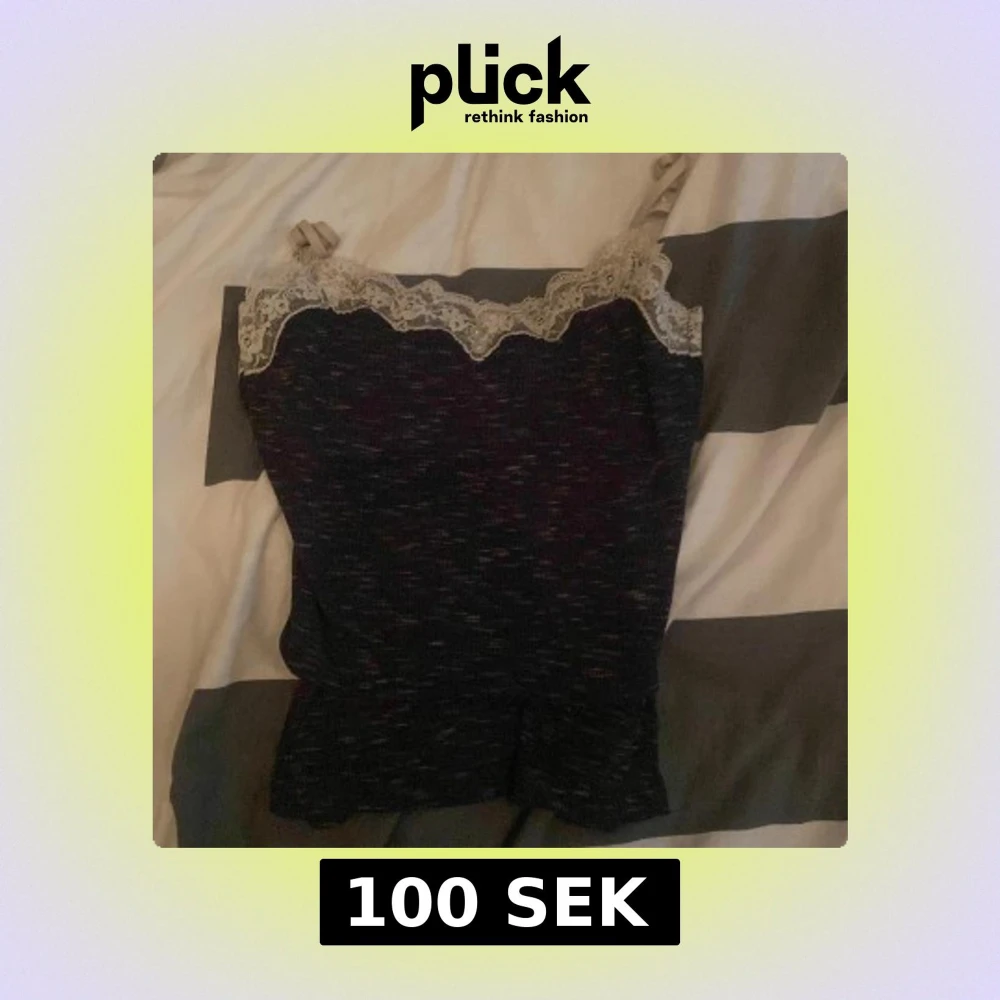 Snyggt svart linne med spetsdetaljer vid halsringningen. Perfekt för en stilren look. Axelbanden är smala och ger en elegant touch.