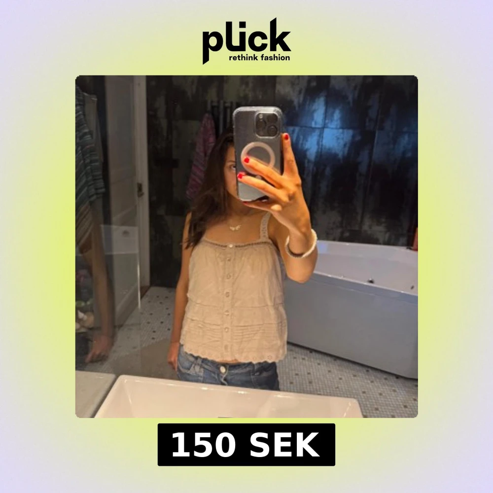 En söt beige blus med knappar framtill och spetsdetaljer på axelbanden. Perfekt för varma dagar och kan enkelt matchas med jeans eller kjol. Aldrig använd men ingen prislapp kvar på!💕