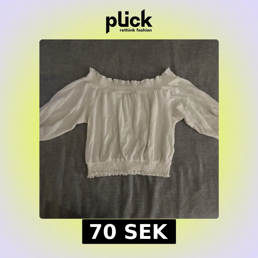 Säljer en söt vit offshoulder topp från Sinsay. Toppen har en elastisk kant vid axlar och midja som ger en fin passform. Perfekt för varma dagar!