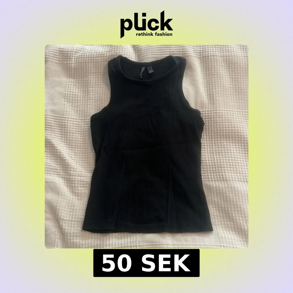 Säljer en svart ribbad linnetopp från Pieces. Toppen har en tight passform och är ärmlös med rund halsringning. Perfekt för sommaren och enkel att matcha med olika outfits. 🫶🏼🫶🏼