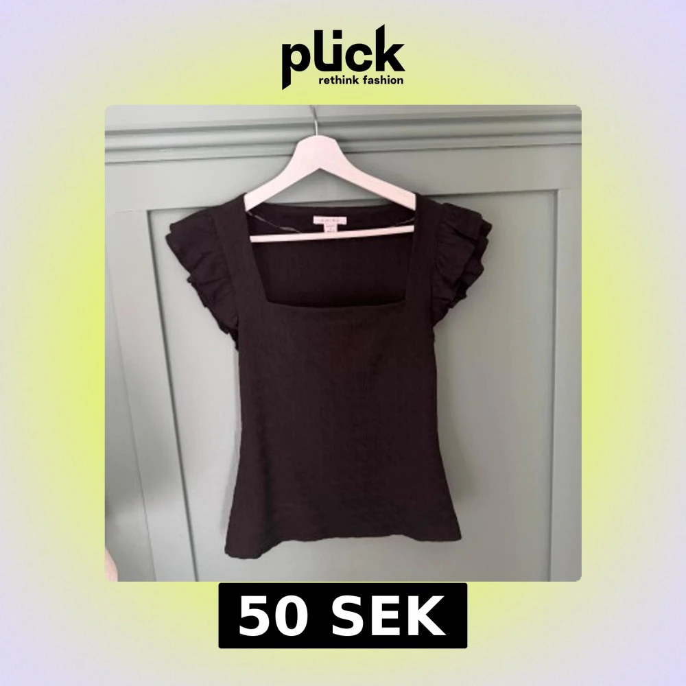 Säljer en svart topp från Amisu med fyrkantig ringning och fina volangärmar.